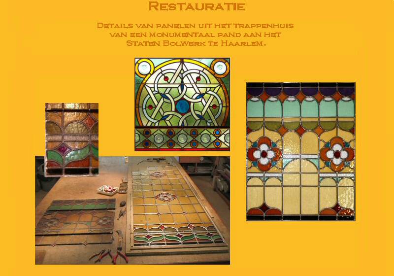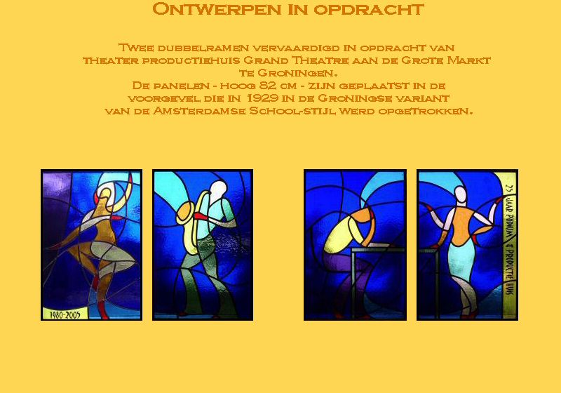 Ontwerp, uitvoering en restauratie van glas in lood in eigen atelier te Noord Groningen.